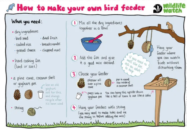 Have been reading and writing instructions. The Wildlife Trust's bird feeder instructions have been really useful!
